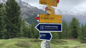 Ab auf den Corviglia. Wir wagen uns mit dem Strom durchaus hoch ins beliebte Skigebiet – nur ist es Sommer – um so besser!